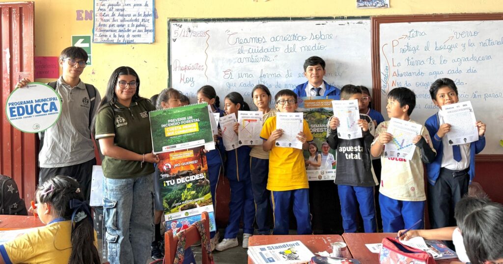 Durante esta jornada, estudiantes de las instituciones educativas San Pedro, Señor de los Milagros y Hermilio Valdizán nivel Primaria, aprendieron sobre la prevención de incendios forestales y la medidas correctivas en las que podemos participar como ciudadanos.